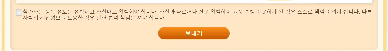 6. 하단 체크박스에 체크 후 보내기 버튼을 누르면 신청이 완료됩니다.