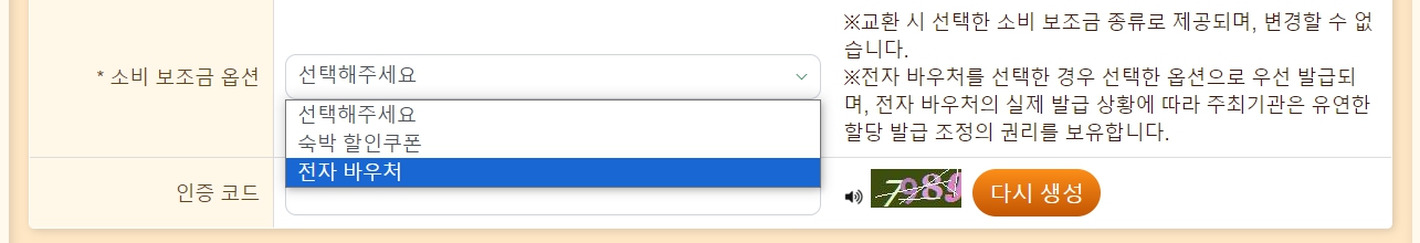 5. 대만 여행 시 받고 싶은 [소비 보조금 옵션]을 선택합니다.
